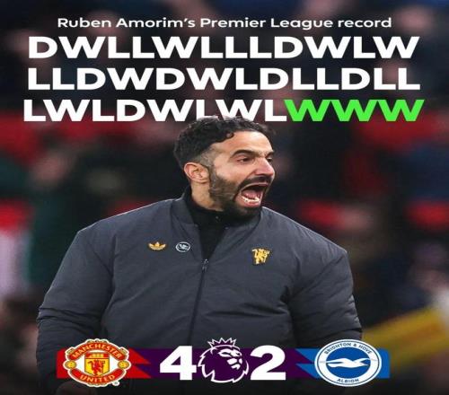 英超官方推特:阿莫林迎来三连胜